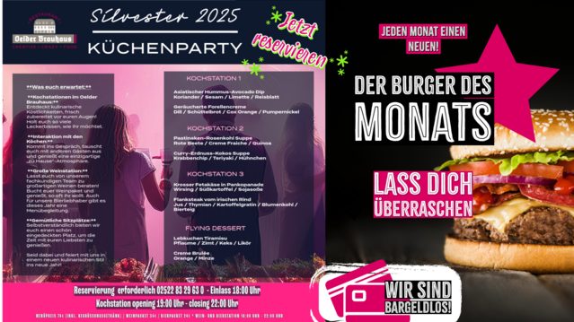 Alles - nur nicht altbacken! Wir füllen das Oelder Brauhaus mit Moderne, Frische und Kreativität. Hausgemachte Gerichte für wirklich jeden Geschmack bringt Jung & Alt, Veggi & Steak, Asia & Wiener an einen Tisch. Der richtige Umgang mit Lebensmitteln, frische Zutaten, modernste Lebensmitteltechnologie und herzlicher "Du"-Service sind das, was das Brauhaus ausmacht. Die Kombination aus einer besonderen Lichtinstallation und einer eindrucksvollen Lost-Places Fotoausstellung von Markus Gebauer ( ) erzeugen ein gleichermaßen modernes wie gemütliches Ambiente. Bei uns findet das Leben (lecker) statt! Wir freuen uns auf Dich.